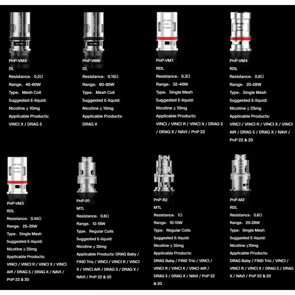 - 0.15 ohm PnP-VM6 Mesh Coils (60-80W) ≤10mg DL